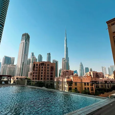 The 85 m² Sanctuary Stays - Premium 1Br - Burj Khalifa Views - Near Dubai Mall apartment is located 2.5 km from Business Bay train station and just a 6-minute walk from the Bastakia Quarter. Also, the presence of a swimming pool guarantees a relaxing stay.